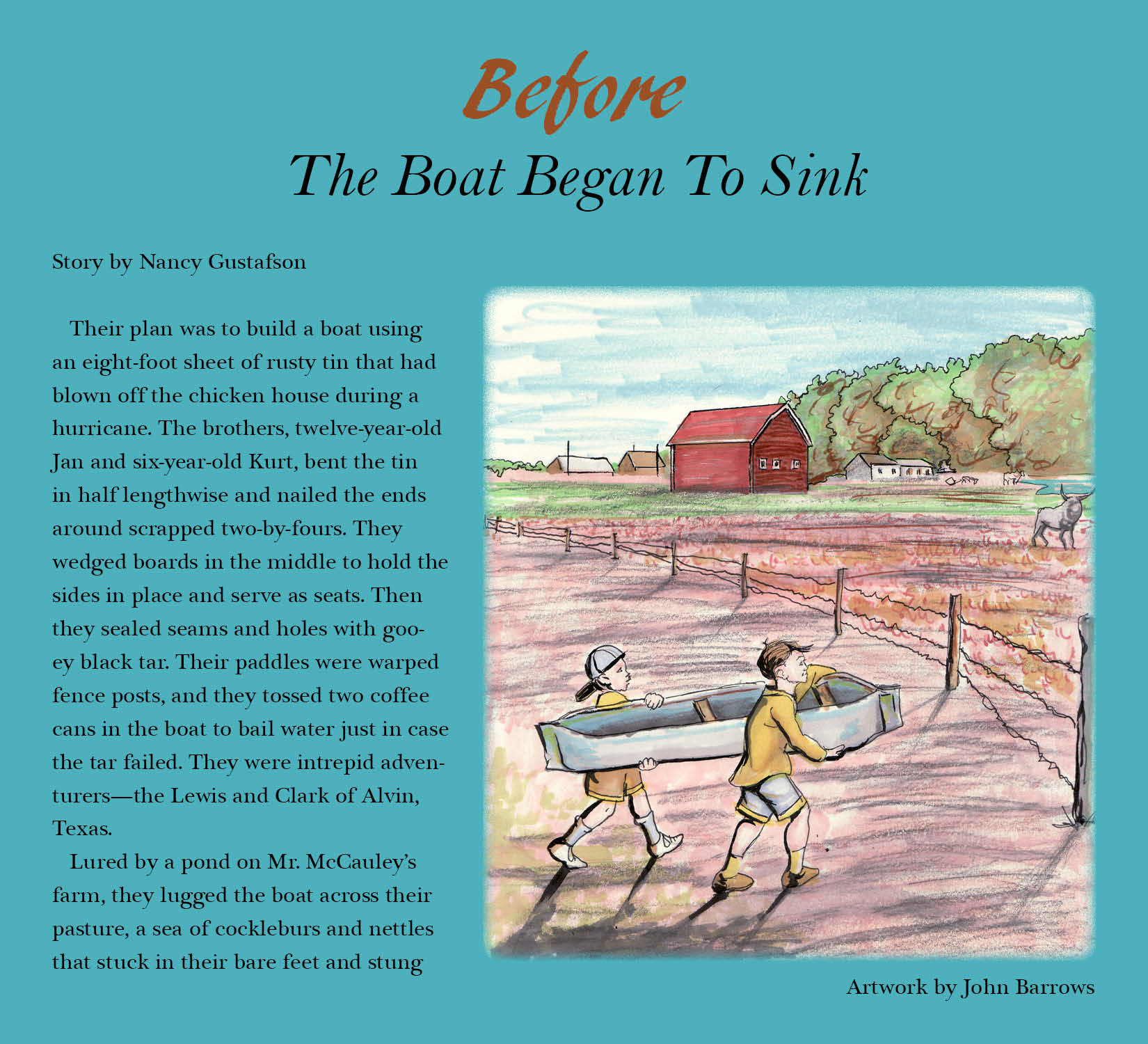 Nancy Gustafson has published poetry, short fiction and memoirs. She lives with her husband, Jan, in Huntsville, Texas. She may be found in the kitchen, the garden, at the sewing machine or, most often, writing at her desk.