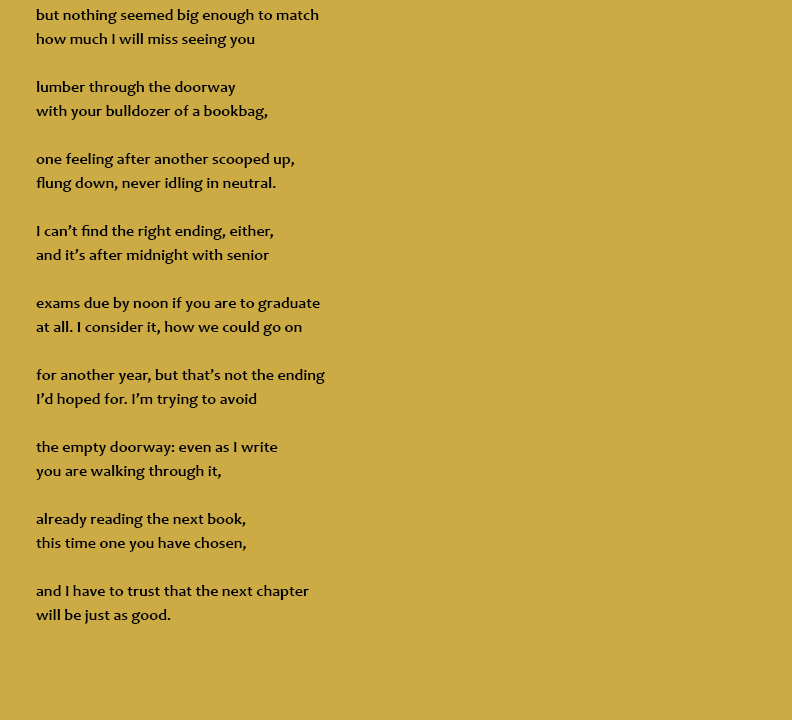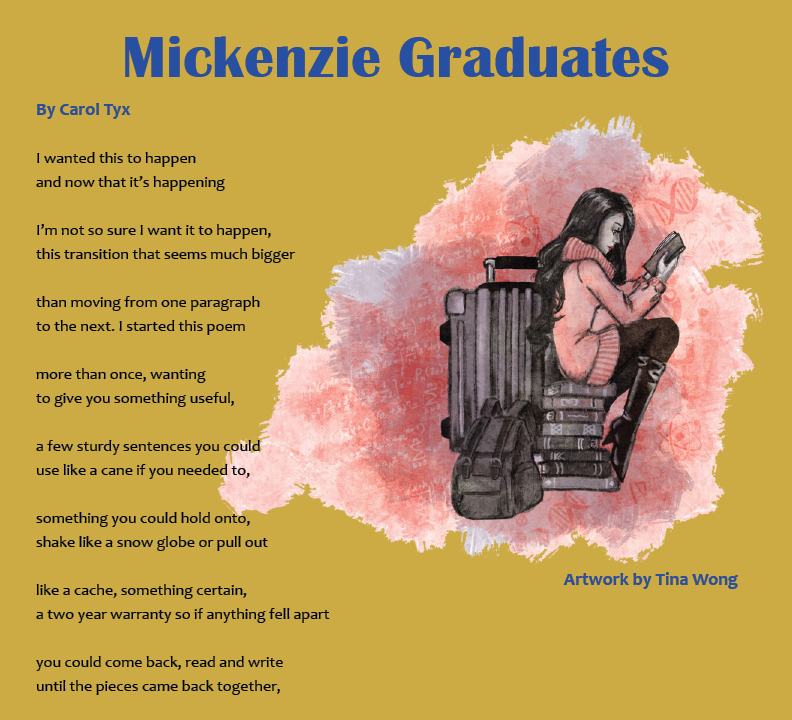 Carol Tyx is the author of Rising to the Rim by Brick Road Poetry Press. Her poems have appeared most recently in Concho River Review, Hunger Mountain, and Minerva Rising. When she isn't teaching at Mt. Mercy University in Iowa, you might find her discussing books in prison, singing with the HeartSong community, or pulling weeds at a local CSA.