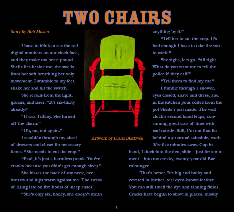 Bob Mustin has had a brief naval career and a longer one as a civil engineer, and has been a North Carolina Writers Network writer-in-residence at Peace College under Doris Betts' guiding hand. In the early 1990s, he was the editor of a small literary journal, The Rural Sophisticate, based in Georgia. His work has appeared in The Rockhurst Review, Elysian Fields Quarterly, Cooweescoowee, Under The Sun, Gihon River Review, Reflections Literary Journal, thesquaretable.com, raving dove, Sport Literate, The Externalist, Language and Culture, and R.KV.R.Y in electronic form. Mustin's novella, The Blue Bicycle, has recently been published as a Kindle book on Amazon.