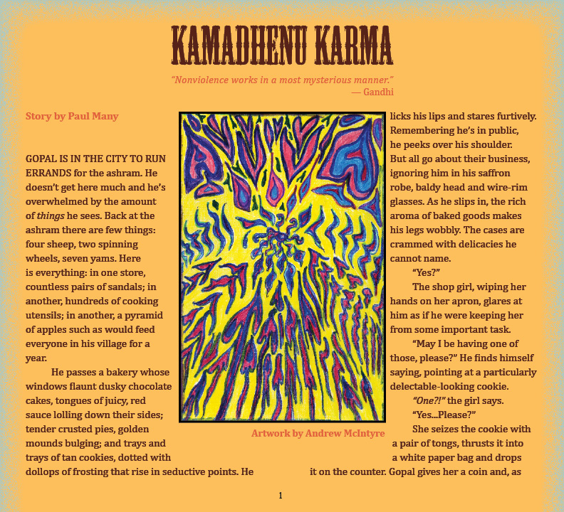 Andrew McIntyre's two key influences are the Mandelbrot set and Magic Realism. He works with colored pencils, oil pastels, and acrylic paint. He has published artwork with New Works Review, Yareah Magazine (May, 2009 Artist of the Month), Illogical Muse, Centrifugal Eye, and Cerebration. More of his artwork can be viewed at www.mcintyre-art.com. His short story collection, The Short, the Long, and the Tall, was recently published by Merilang Press.