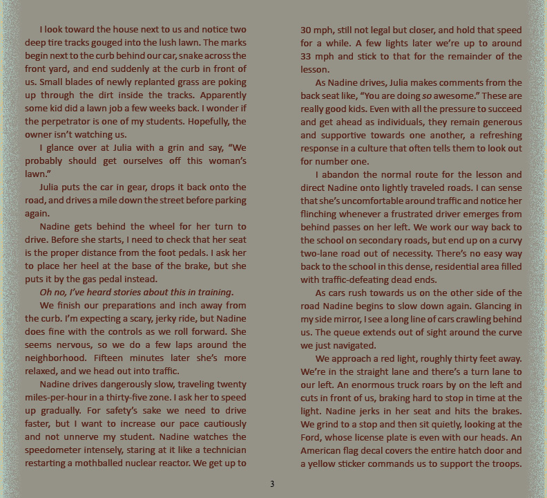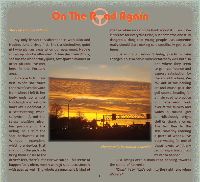 Thomas Sullivan's writing has appeared in Word Riot and 3AM Magazine, among others. He is the author of Life In The Slow Lane, a memoir about teaching driver education in Oregon. For information on this title (published by Uncial Press), please visit his author website at www.thomassullivanhumor.com.