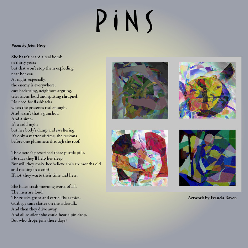 John Grey is an Australian born poet and US resident since the late seventies. He works as a financial systems analyst. He was recently published in Connecticut Review, Kestrel and Writer's Bloc with work upcoming in Pennsylvania English, Alimentum and the Great American Poetry Show. You can see more of his work at